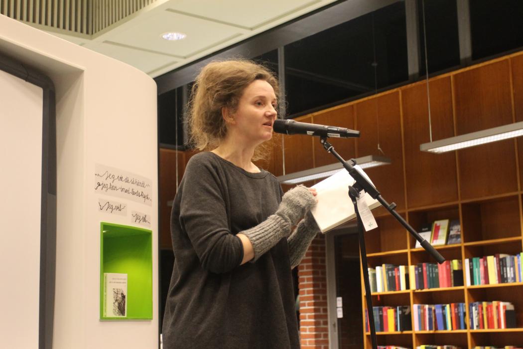Reportage fra Ursula Andkjær Olsens besøg på Åby Bibliotek den 13. november i forbindelse med temaudstillingen Billeder i Ursula Andkjær Olsens forfatterskab. En udstilling om Olsens eksperimenterende forfatterskab skabt i samarbejde mellem Åby Bibliotek og Olsen selv.