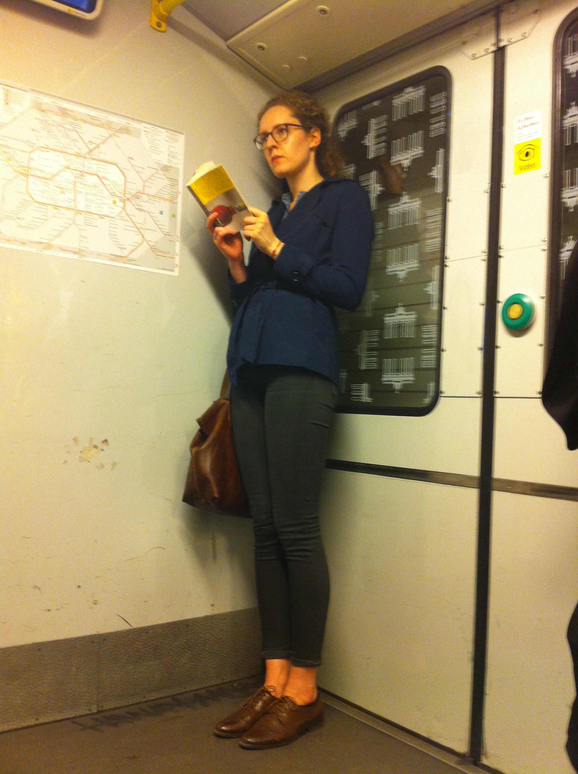 Sidste bog så jeg i U-Bahn på vej til et møde med en kommunist fra teatret Volksbühne. Denne formodede tyske kvinde læser en bog – men hvad er det mon for en? Hvem kan gætte det? Så vidt jeg kunne se begyndte titlen med ”CA”. Kom frisk! #quiz #delæsermegetidetoffentligerum