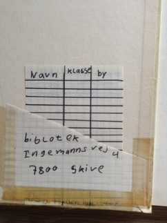 Det var før stregkodens tid, og jeg måtte klistre en lille lomme af papir ind bag i bøgerne. Jeg mindes ikke, at der var nogen, der gik fri, og jeg klippede kort og tegnede kolonner, så det kom til at ligne noget fra et rigtigt bibliotek.