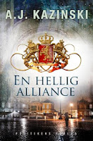 Og så skal vi til krimierne!: Pseudonymet A.J. Kazinski udgiver deres tredie krimi, En hellig alliance. Forfatterparret har givet deres sædvanlige hovedperson, Niels Bentzon, lov til at holde barselsorlov, og derfor overtager den arbejdsløse journalist og nu børnehavekantinemedarbejder i jobtilbud Eva Katz hovedrollen. Hun kommer via en tegning af et af børnehavebørnene på sporet af en historie om mord - der endda viser sig at have relation til kongehuset. Jeg har i lighed med en hel del andre bogbloggere fået tilsendt et eksemplar og anmelder på udgivelsesdagen, d. 3. oktober.